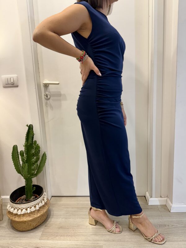 Un abito dal taglio midi e senza maniche che lo rendono adatto ad ogni occasione, dal lavoro alla serata. la chiusura con cerniera aggiunge un tocco pratico.